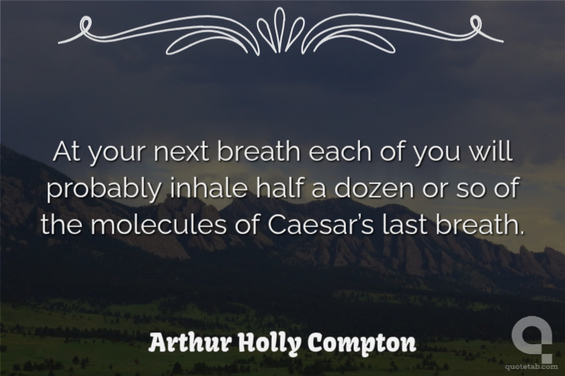 At your next breath each of you will probably inhale half a dozen or so of the molecules of Caesar’s last breath. Arthur Holly Compton