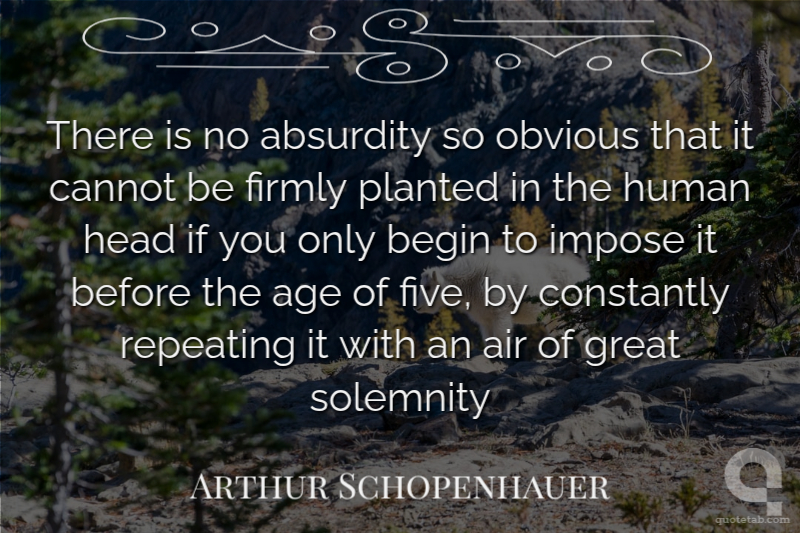 There is no absurdity so obvious that it cannot be firmly planted in the human head if you only begin to impose it before the age of five, by constantly repeating it with an air of great solemnity Arthur Schopenhauer