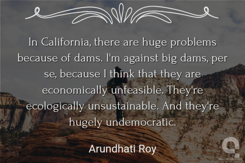 In California, there are huge problems because of dams. I'm against big dams, per se, because I think that they are economically unfeasible. They're ecologically unsustainable. And they're hugely undemocratic. Arundhati Roy