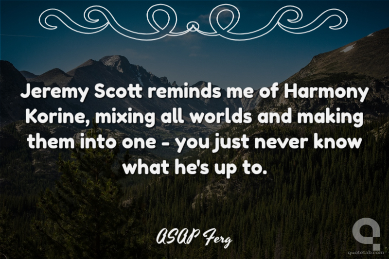 Jeremy Scott reminds me of Harmony Korine, mixing all worlds and making them into one - you just never know what he's up to. ASAP Ferg