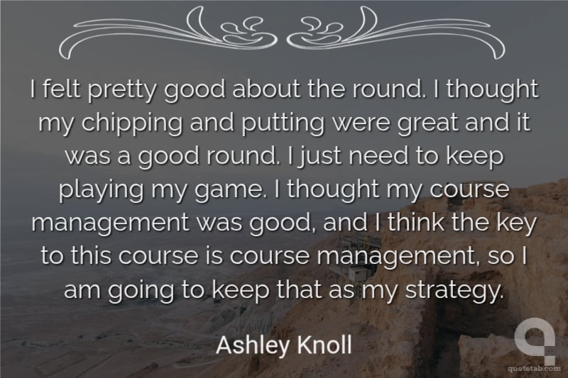 I felt pretty good about the round. I thought my chipping and putting were great and it was a good round. I just need to keep playing my game. I thought my course management was good, and I think the key to this course is course management, so I am going to keep that as my strategy. Ashley Knoll