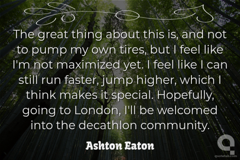 The great thing about this is, and not to pump my own tires, but I feel like I'm not maximized yet. I feel like I can still run faster, jump higher, which I think makes it special. Hopefully, going to London, I'll be welcomed into the decathlon community. Ashton Eaton