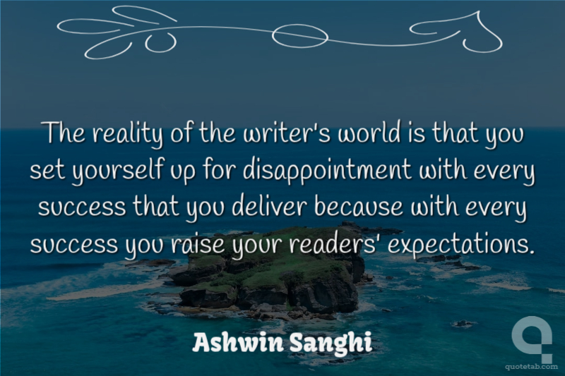 The reality of the writer's world is that you set yourself up for disappointment with every success that you deliver because with every success you raise your readers' expectations. Ashwin Sanghi