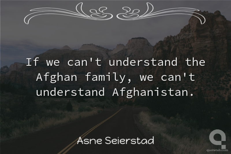 If we can't understand the Afghan family, we can't understand Afghanistan. Asne Seierstad