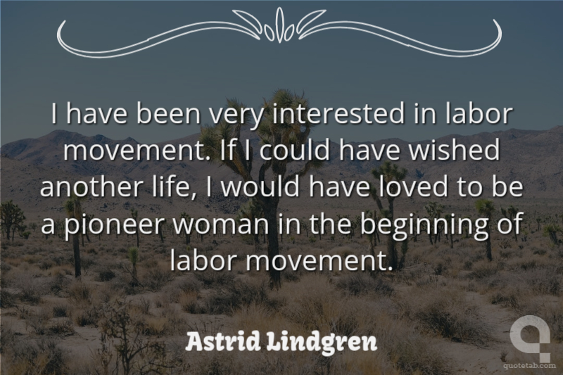 I have been very interested in labor movement. If I could have wished another life, I would have loved to be a pioneer woman in the beginning of labor movement. Astrid Lindgren