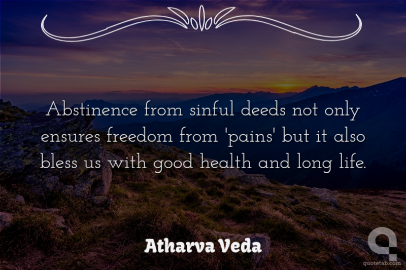 Abstinence from sinful deeds not only ensures freedom from 'pains' but it also bless us with good health and long life. Atharva Veda