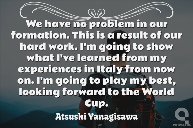 We have no problem in our formation. This is a result of our hard work. I'm going to show what I've learned from my experiences in Italy from now on. I'm going to play my best, looking forward to the World Cup. Atsushi Yanagisawa
