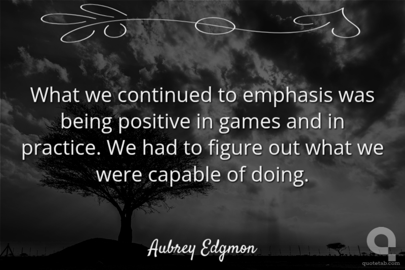 What we continued to emphasis was being positive in games and in practice. We had to figure out what we were capable of doing. Aubrey Edgmon