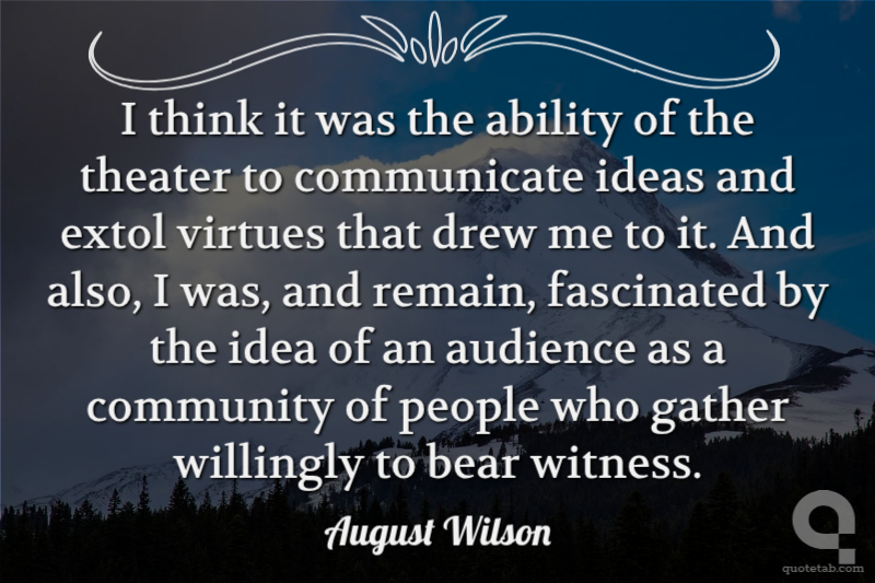 I think it was the ability of the theater to communicate ideas and extol virtues that drew me to it. And also, I was, and remain, fascinated by the idea of an audience as a community of people who gather willingly to bear witness. August Wilson