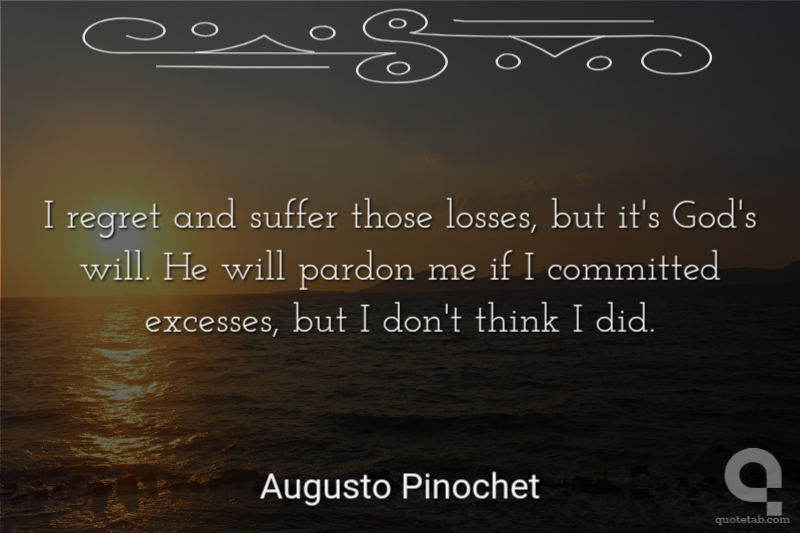 I regret and suffer those losses, but it's God's will. He will pardon me if I committed excesses, but I don't think I did. Augusto Pinochet