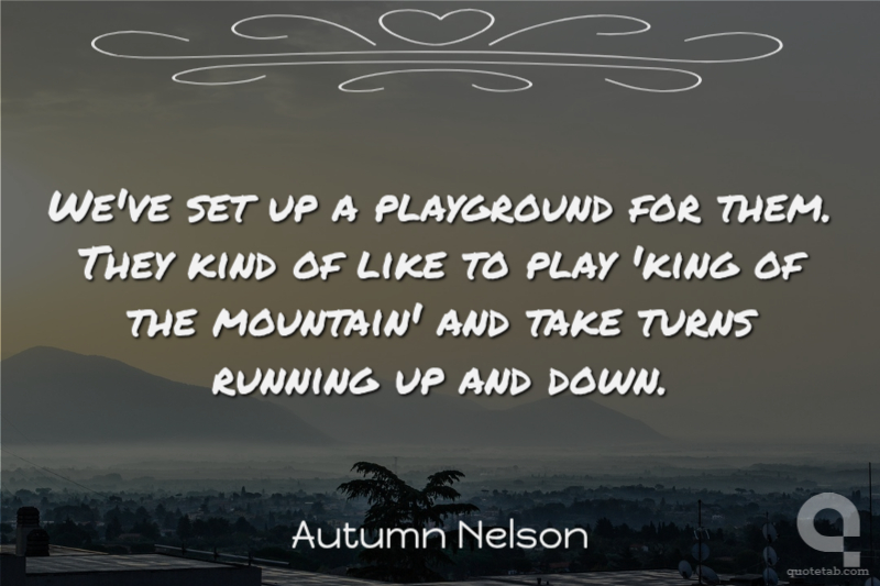We've set up a playground for them. They kind of like to play 'king of the mountain' and take turns running up and down. Autumn Nelson