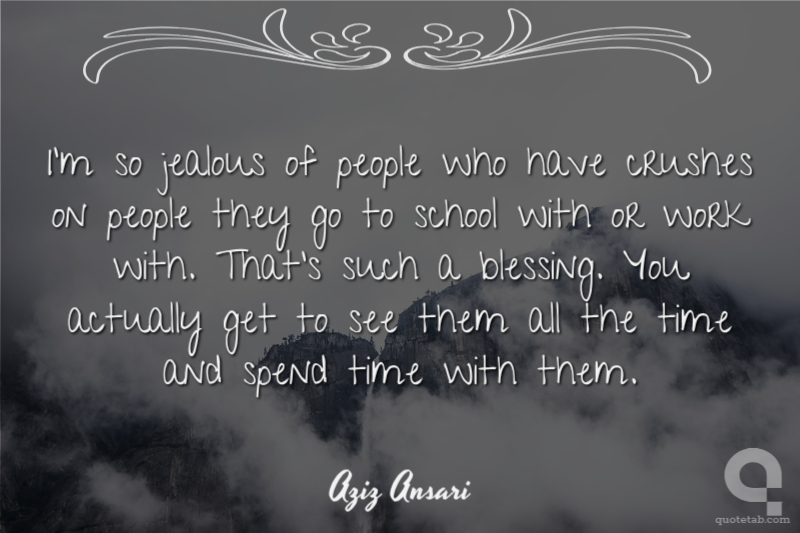 I'm so jealous of people who have crushes on people they go to school with or work with. That's such a blessing. You actually get to see them all the time and spend time with them. Aziz Ansari