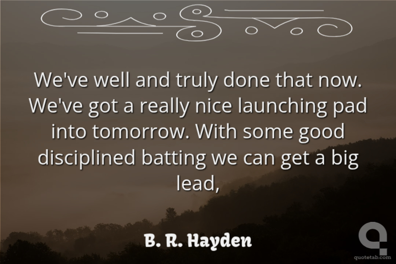 We've well and truly done that now. We've got a really nice launching pad into tomorrow. With some good disciplined batting we can get a big lead, B. R. Hayden