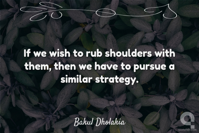 If we wish to rub shoulders with them, then we have to pursue a similar strategy. Bakul Dholakia