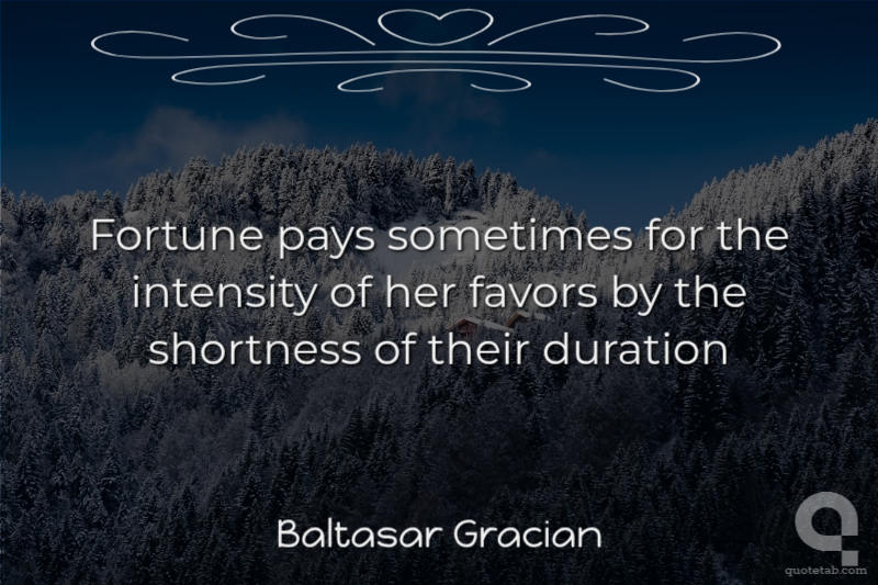 Fortune pays sometimes for the intensity of her favors by the shortness of their duration Baltasar Gracian