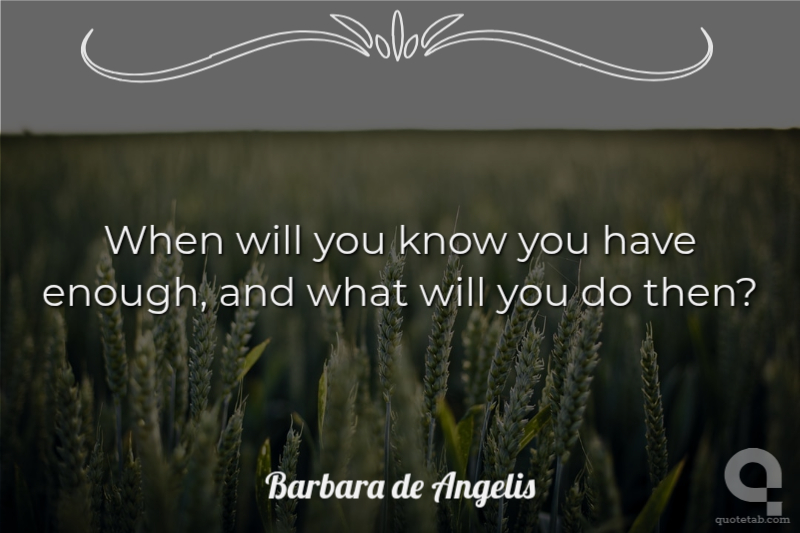 When will you know you have enough, and what will you do then? Barbara de Angelis