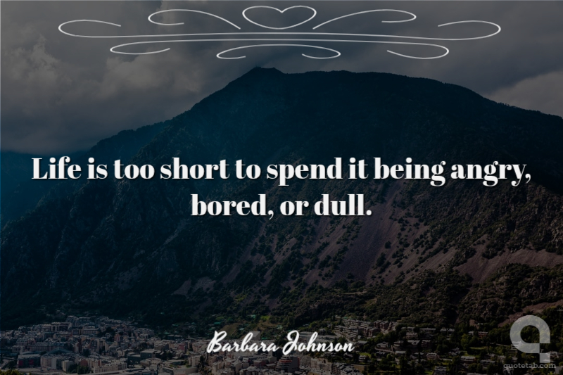 Life is too short to spend it being angry, bored, or dull. Barbara Johnson