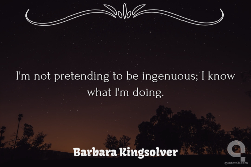 I'm not pretending to be ingenuous; I know what I'm doing. Barbara Kingsolver