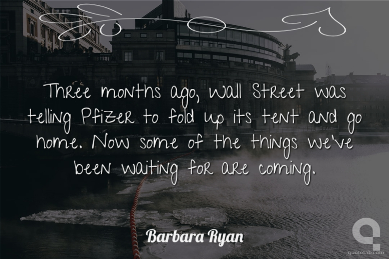 Three months ago, Wall Street was telling Pfizer to fold up its tent and go home. Now some of the things we've been waiting for are coming. Barbara Ryan