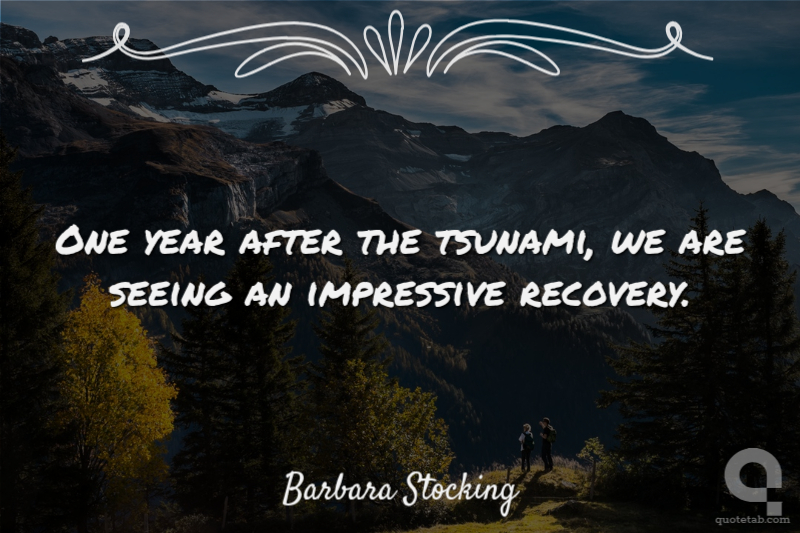 One year after the tsunami, we are seeing an impressive recovery. Barbara Stocking