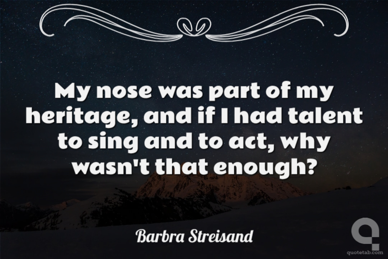 My nose was part of my heritage, and if I had talent to sing and to act, why wasn't that enough? Barbra Streisand