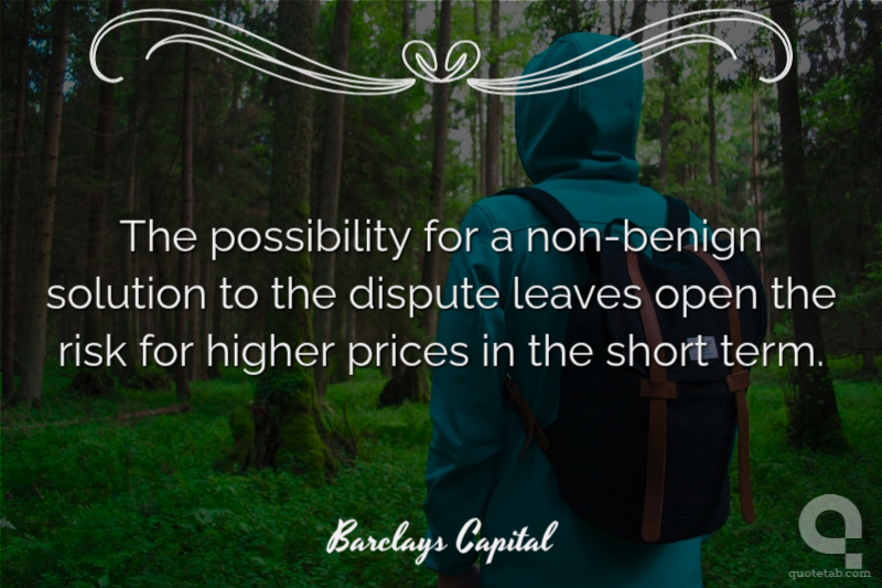 The possibility for a non-benign solution to the dispute leaves open the risk for higher prices in the short term. Barclays Capital
