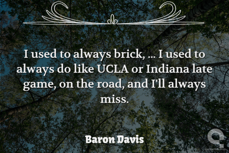 I used to always brick, ... I used to always do like UCLA or Indiana late game, on the road, and I'll always miss. Baron Davis