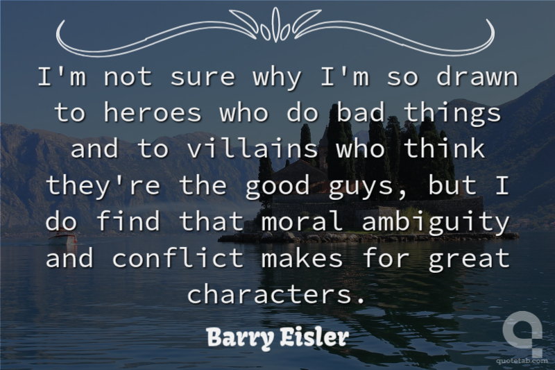 I'm not sure why I'm so drawn to heroes who do bad things and to villains who think they're the good guys, but I do find that moral ambiguity and conflict makes for great characters. Barry Eisler
