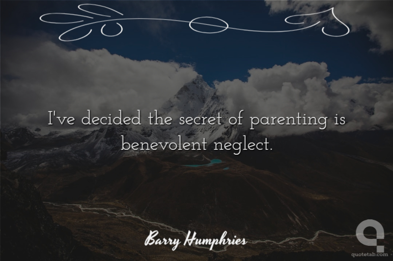 I've decided the secret of parenting is benevolent neglect. Barry Humphries
