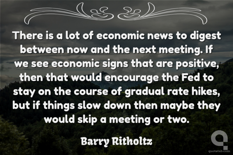 There is a lot of economic news to digest between now and the next meeting. If we see economic signs that are positive, then that would encourage the Fed to stay on the course of gradual rate hikes, but if things slow down then maybe they would skip a meeting or two. Barry Ritholtz