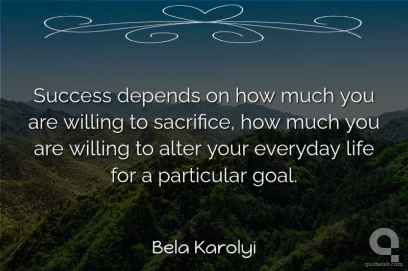 Success depends on how much you are willing to sacrifice, how much you are willing to alter your everyday life for a particular goal. Bela Karolyi