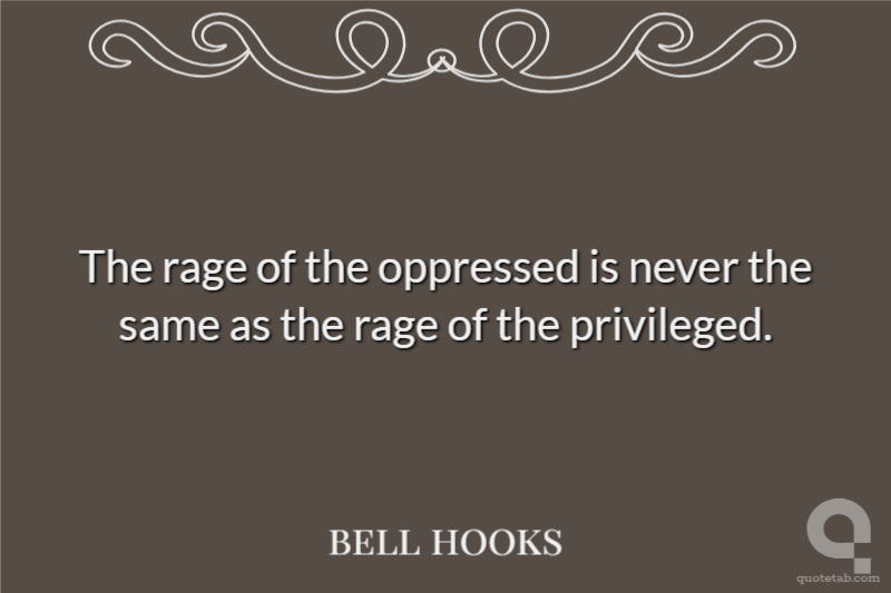 The rage of the oppressed is never the same as the rage of the privileged. bell hooks
