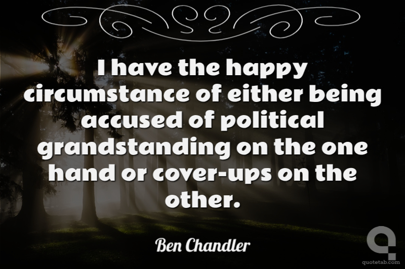 I have the happy circumstance of either being accused of political grandstanding on the one hand or cover-ups on the other. Ben Chandler