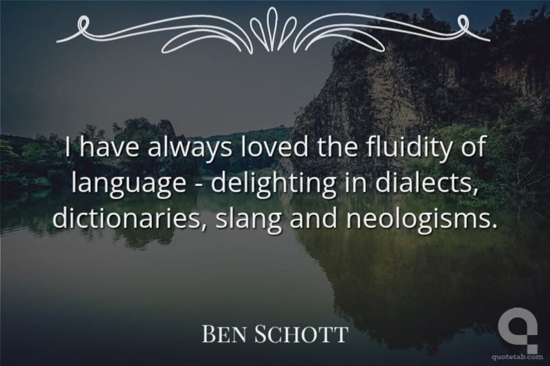 Ben Schott I have always loved the fluidity of language - delighting in dialects, dictionaries, slang and neologisms.