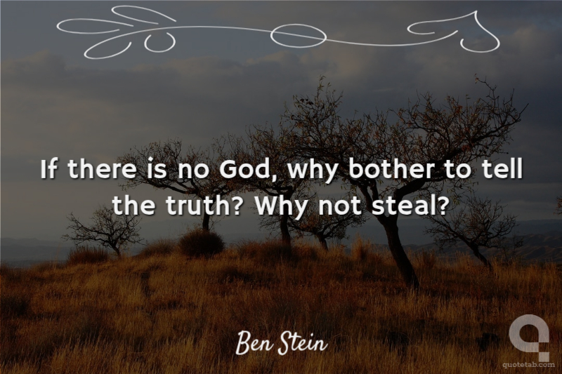 If there is no God, why bother to tell the truth? Why not steal? Ben Stein