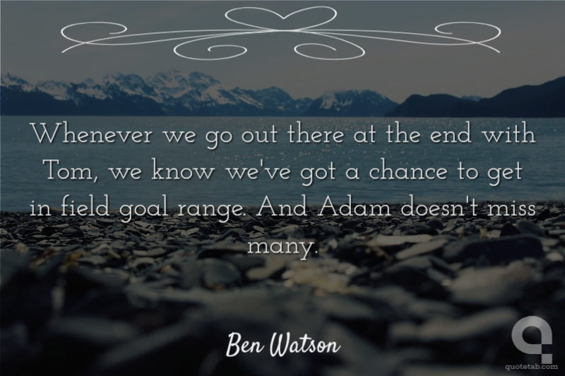 Whenever we go out there at the end with Tom, we know we've got a chance to get in field goal range. And Adam doesn't miss many. Ben Watson