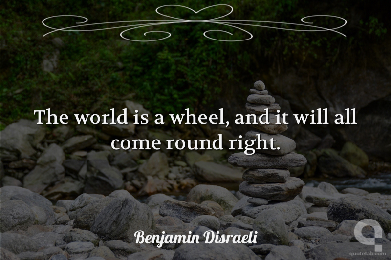 The world is a wheel, and it will all come round right. Benjamin Disraeli