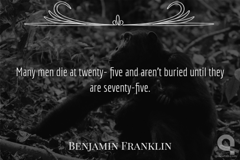 Many men die at twenty- five and aren't buried until they are seventy-five. Benjamin Franklin