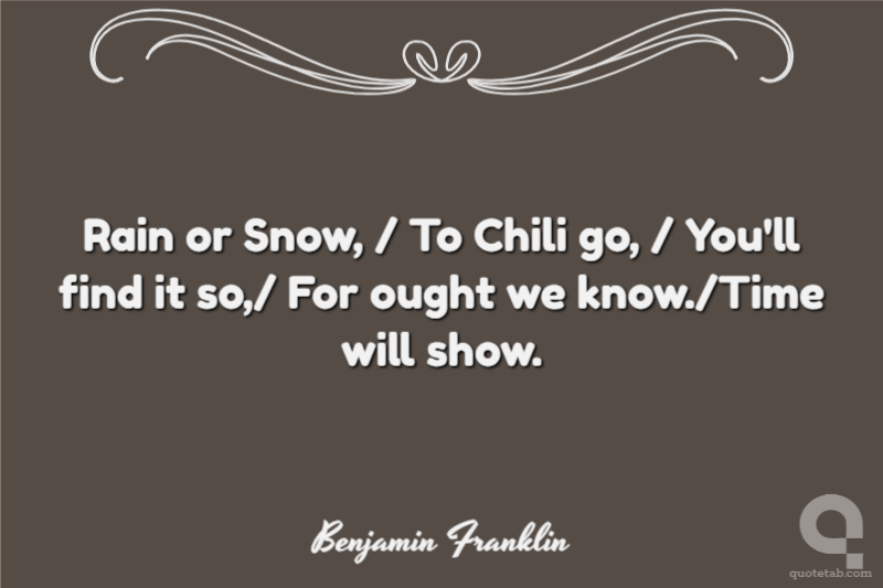 Rain or Snow, / To Chili go, / You'll find it so,/ For ought we know./Time will show. Benjamin Franklin