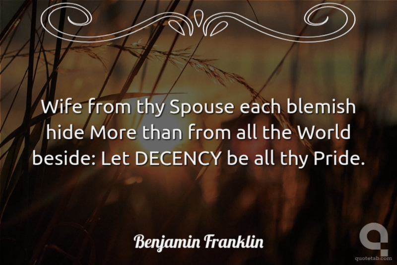 Wife from thy Spouse each blemish hide More than from all the World beside: Let DECENCY be all thy Pride. Benjamin Franklin