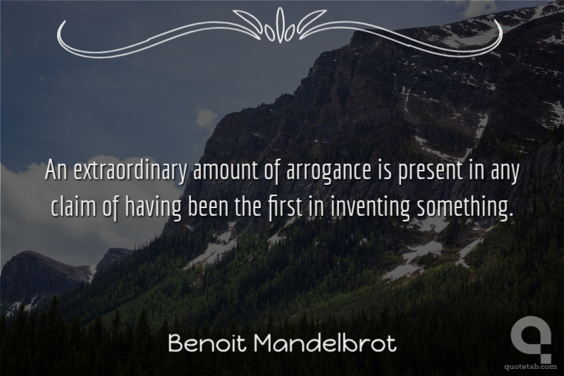An extraordinary amount of arrogance is present in any claim of having been the first in inventing something. Benoit Mandelbrot
