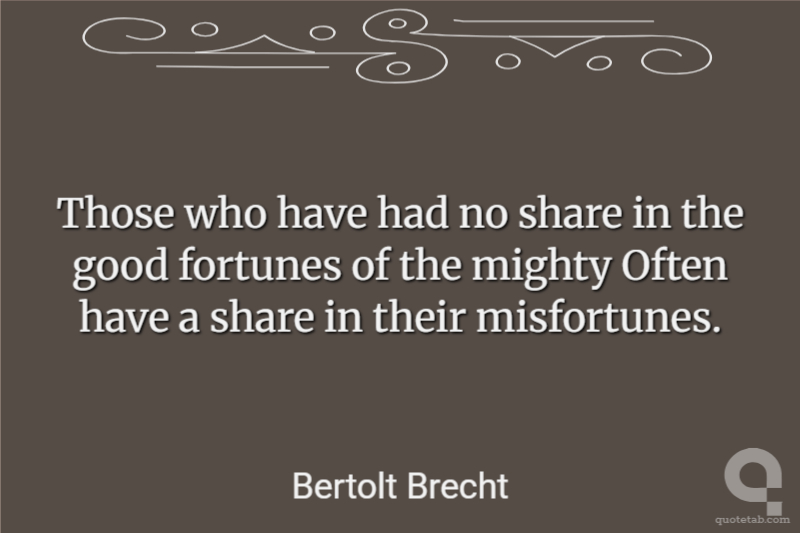 Those who have had no share in the good fortunes of the mighty Often have a share in their misfortunes. Bertolt Brecht