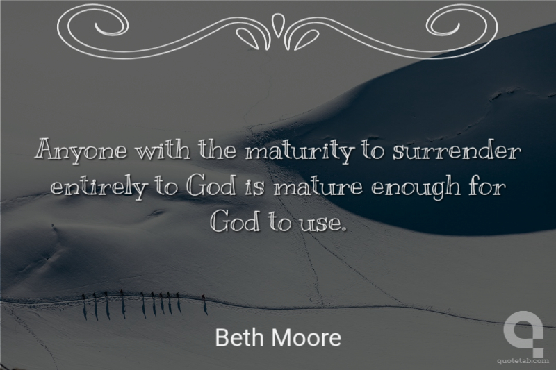 Anyone with the maturity to surrender entirely to God is mature enough for God to use. Beth Moore