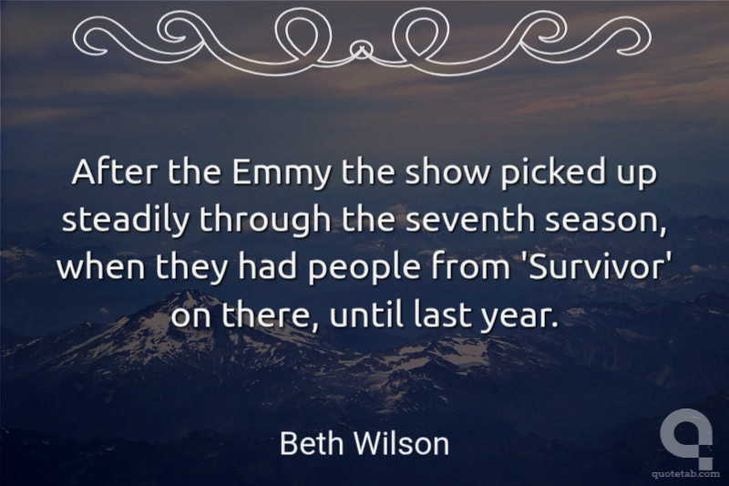 After the Emmy the show picked up steadily through the seventh season, when they had people from 'Survivor' on there, until last year. Beth Wilson