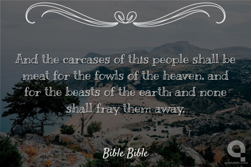 And the carcases of this people shall be meat for the fowls of the heaven, and for the beasts of the earth; and none shall fray them away. Bible Bible