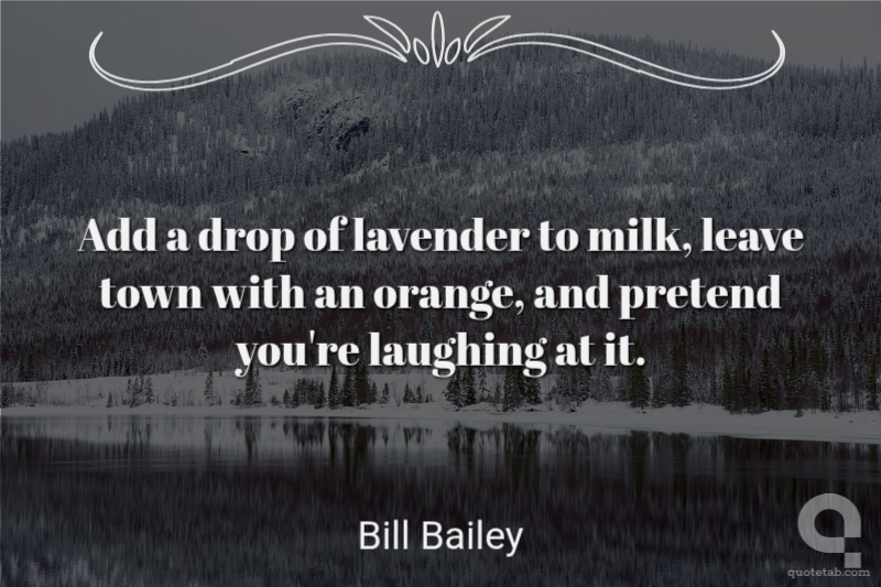 Add a drop of lavender to milk, leave town with an orange, and pretend you're laughing at it. Bill Bailey