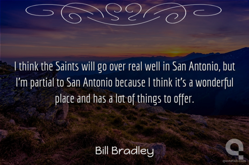 I think the Saints will go over real well in San Antonio, but I'm partial to San Antonio because I think it's a wonderful place and has a lot of things to offer. Bill Bradley