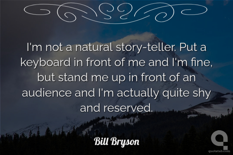 I'm not a natural story-teller. Put a keyboard in front of me and I'm fine, but stand me up in front of an audience and I'm actually quite shy and reserved. Bill Bryson