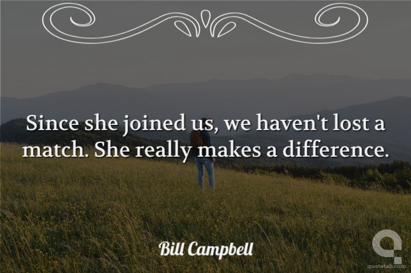 Since she joined us, we haven't lost a match. She really makes a difference. Bill Campbell