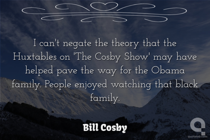 I can't negate the theory that the Huxtables on 'The Cosby Show' may have helped pave the way for the Obama family. People enjoyed watching that black family. Bill Cosby